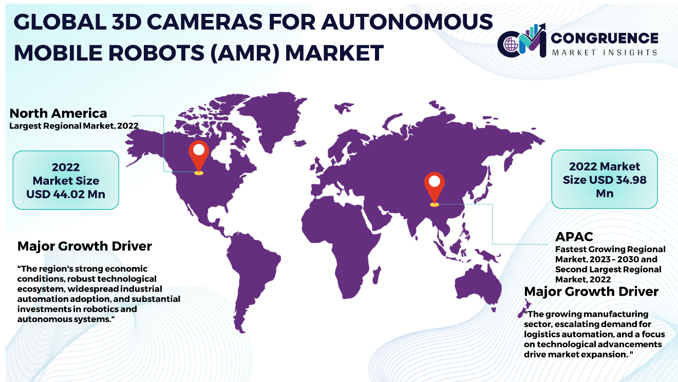 In recent years, there has been a substantial surge in the global market for 3D cameras employed in Autonomous Mobile Robots (AMR), driven by the increasing adoption of automation and robotics across diverse industries. The significance of 3D cameras in enhancing the perceptual and navigational capabilities of AMRs is of paramount importance, facilitating their adept navigation through complex environments with heightened precision and efficiency. This market is characterized by a diverse array of participants, including established camera manufacturers, robotics enterprises, and technology innovators. Continuing advancements in sensor technologies, such as LiDAR and stereo vision, have played a pivotal role in elevating the performance of 3D cameras, reinforcing their integral role in the effective deployment of autonomous robots across sectors such as logistics, manufacturing, and healthcare. Furthermore, the escalating emphasis on safety and reliability in autonomous systems has spurred heightened investments in research and development, propelling the ongoing innovations in 3D camera technology tailored for AMRs.