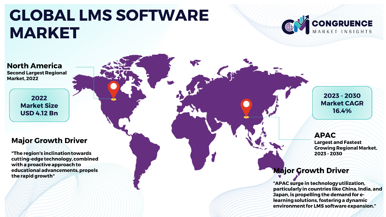 The Asia Pacific region has positioned itself as a predominant force in the LMS software market owing to several pivotal factors. Marked by a swiftly expanding economy, a notable uptick in technology adoption, and a concentrated emphasis on education and professional development, the Asia Pacific has experienced a substantial upsurge in the requirement for e-learning solutions. The increasing penetration of the internet, in conjunction with the proliferation of mobile devices, has played a significant role in driving the heightened adoption of online learning platforms. Moreover, the region's sizable and diverse population, coupled with a pronounced demand for continuous learning and skills enhancement, has bolstered the need for LMS software, not solely confined to academic institutions but also within the corporate sector. Noted for its technological progress and steadfast dedication to education, North America presently demonstrates the second most elevated growth rate in the LMS software market. The region boasts a robust economy and a thriving technology industry, fostering the adoption of innovative solutions and resulting in a substantial increase in the uptake of e-learning platforms. North America's persistent commitment to technological advancement and education further cements its status as a pivotal contributor and a rapidly expanding market within the LMS software sector. Owing to its significant focus on education, Europe has allocated considerable investments toward digital learning solutions, cultivating an environment conducive to the extensive adoption of e-learning platforms. The UAE and Saudi Arabia in the Middle East are adopting e-learning due to tech advances and focus on education, expecting greater LMS use. Likewise, Brazil and Argentina in South America emphasize e-learning, especially for remote education and workforce development, anticipating increased LMS market involvement due to growing internet access and government-led digital education promotion.