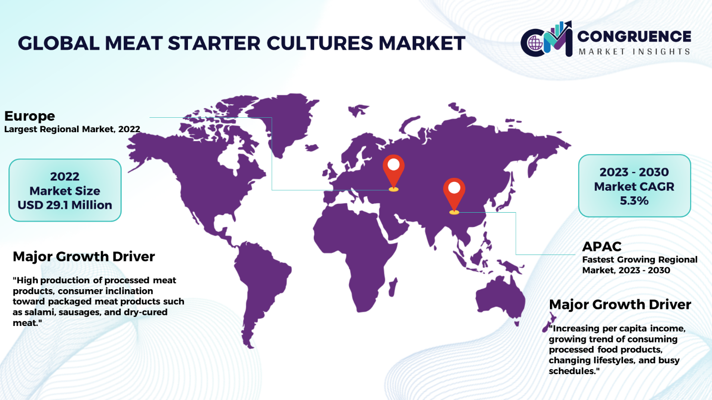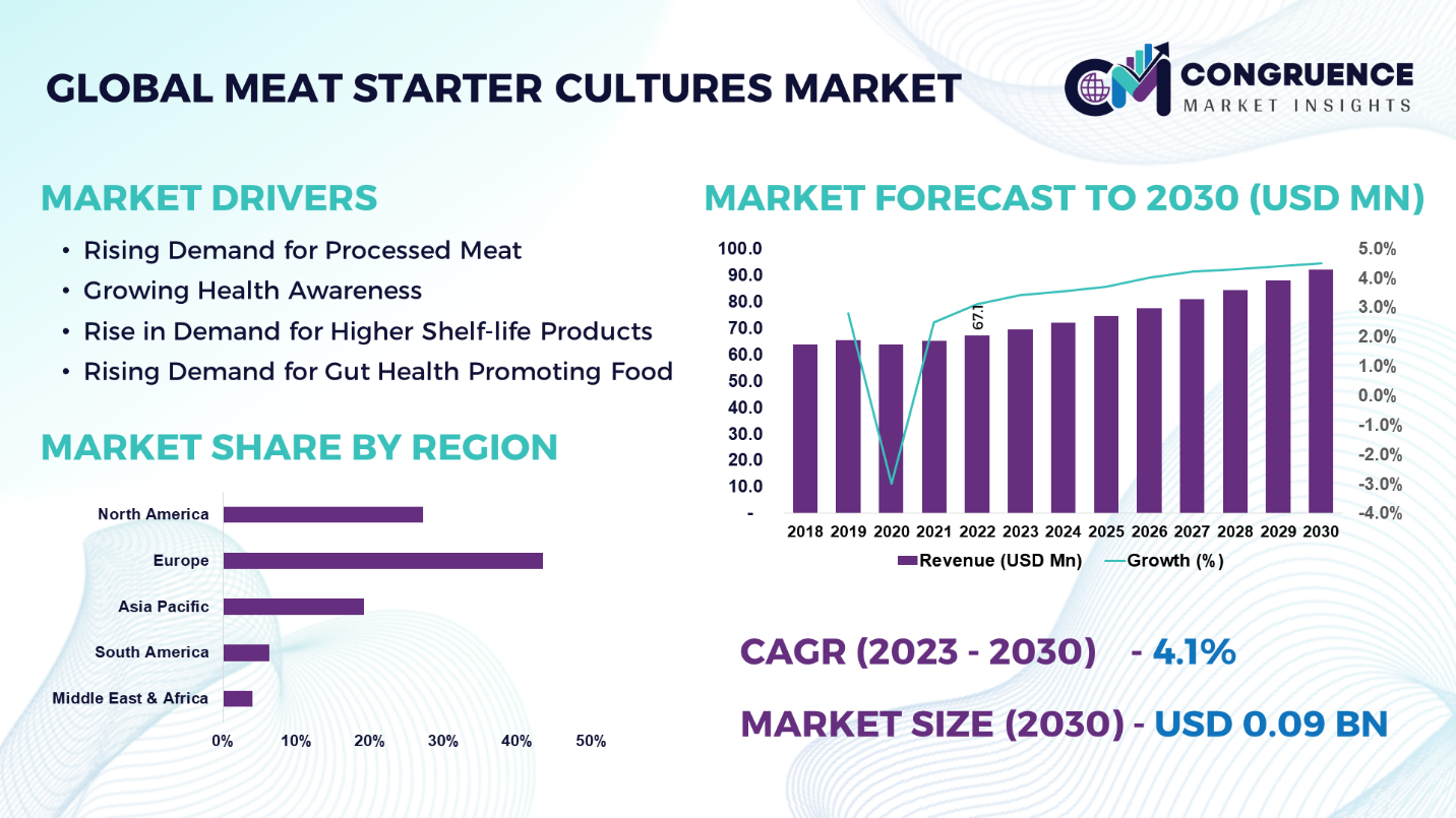 Rising Demand for Gut Health Promoting Food: The growing trend of consuming foods that has functional benefits is driving the growth of global meat starter culture market. The market is significantly driven by the demand for gut health-promoting foods such as products containing probiotic bacterial cultures.