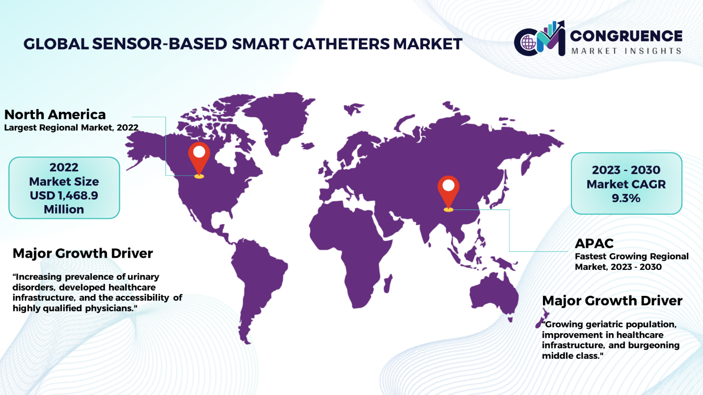 North America led the market due to advanced healthcare infrastructure and the presence of strong patient base with kidney and cardiovascular diseases within region. In North America, the demand is driven by increasing prevalence of urinary disorders, developed healthcare infrastructure, and the accessibility of highly qualified physicians in the region. In Europe, the growth is attributed to the rising disposable income, growing healthcare demand, and growing aging population in the region. In Asia-Pacific, the market is characterized by growing geriatric population, improvement in healthcare infrastructure, and burgeoning middle class which has created an increasing demand for sensor-based smart catheters. Additionally, increasing government policies, innovation in the field, new product launches are also anticipated to drive the market in Asia Pacific region. The Middle East and Africa has been witnessing a growing demand for sensor-based smart catheters due to rising healthcare investments, healthcare infrastructure development, and growing awareness of advanced healthcare technologies in the region.